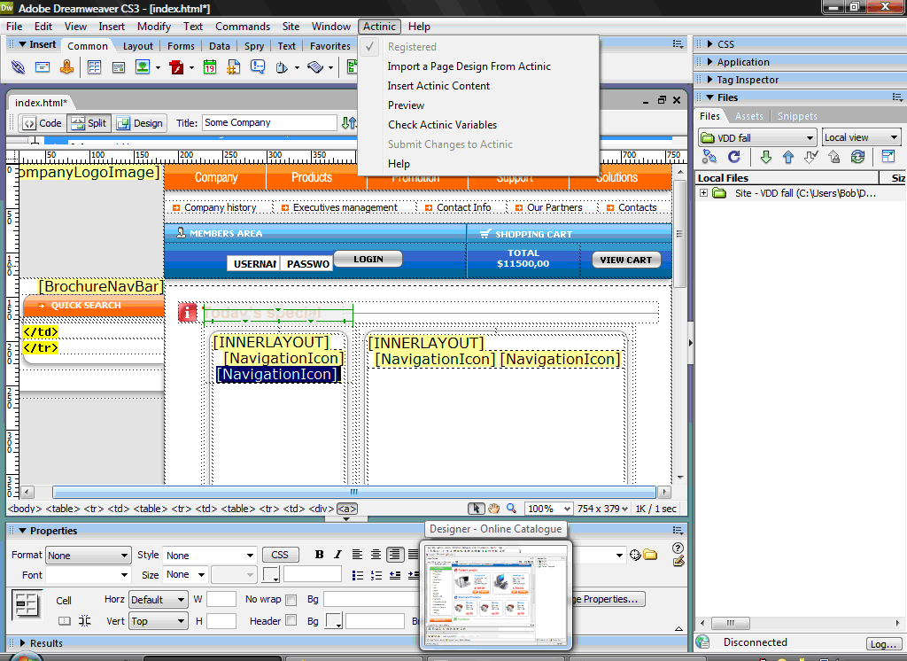 Using Vista ultimate dreamweaver cs3 actinic 8.5.1