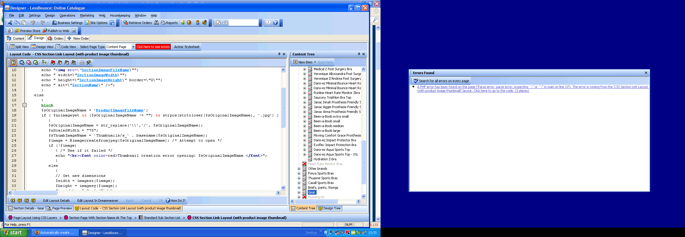 echo "<br><font color=red>Thumbnail creation error opening: $sOriginalImageName </font>";