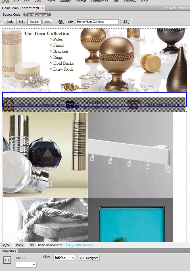 I have attached a shot of my dreamweaver page - the blue border is the div