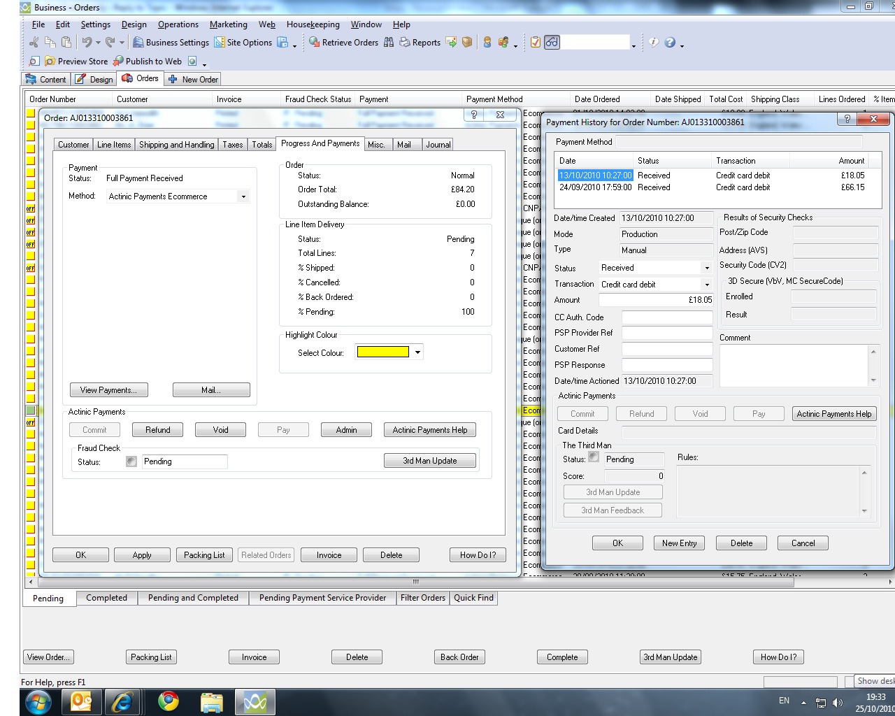 I am having problems with two orders. One I needed to increase to postage cost, so I adjusted it manually in the order's Shipping & Handeling tab. It then said only partial payment had been received, so I added a new payment by viewing the payments in the Progress & Payments tab. Now, a few days on, I have checked the AP admin panel to check the payment has gone through, and I cannot find any evidance of it. Did I miss something?