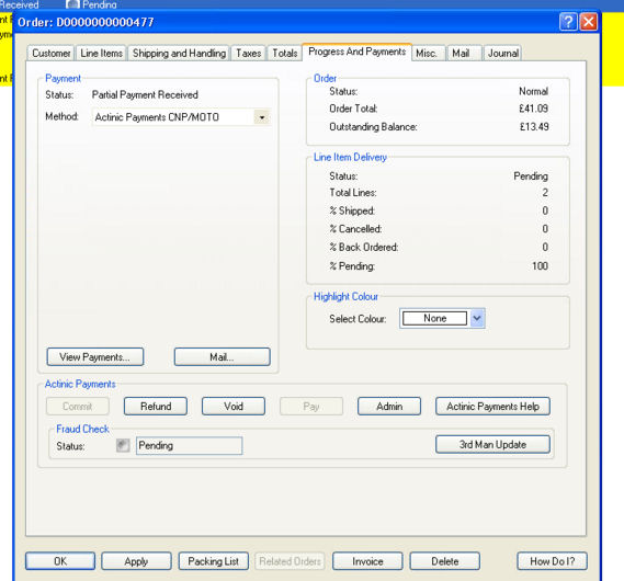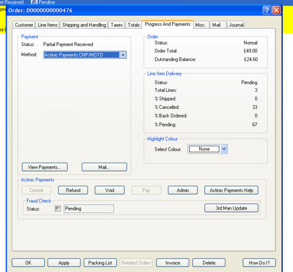 I've just done a test telephone order - all seemed to go fine; card was processed but when I went back to Actinic the order is under the Pending Payment Provider and is still showing the balance as being outstanding. is that correct? Do I have to now add it manually?