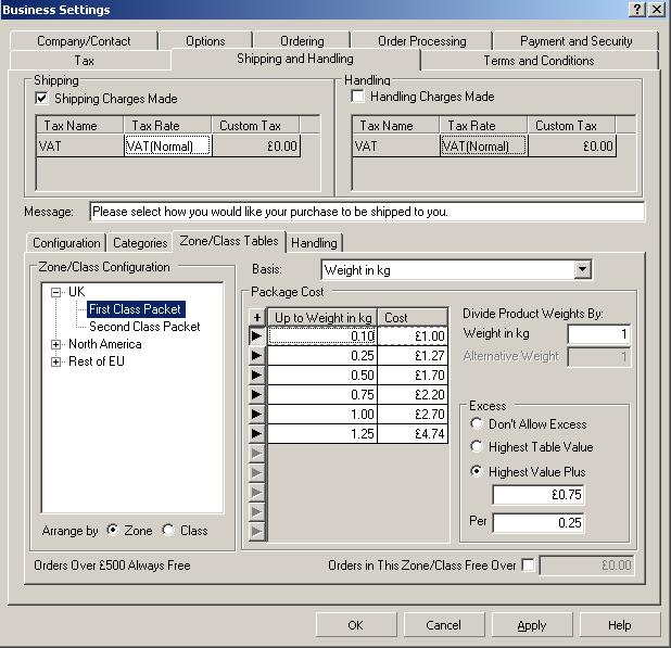 if customer buys one they get charged £4.75 - correct! if they buy two they get charged £6.00 again correct, but then it all goes belly up if they order 3 they get charged £12.00! (3x .4kg = 1.2kg should be £7.75) they get charged £12.00 for 4 or 5 as well then it jumps to £18.00 for sending 6