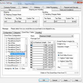 - Parcelforce Zones 1-12 are set up using the maximum weight Basis (Max Weight 30kg)