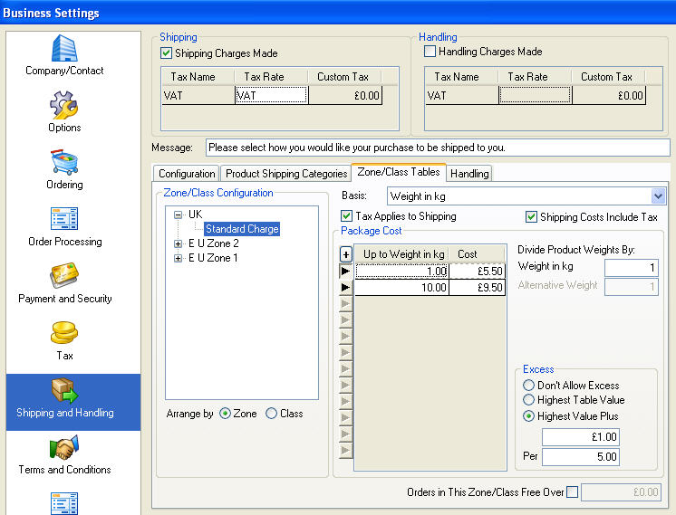 I have set up a Zone/Class Configuration to the UK, and two separate areas for the Euro Zone, including only the countries my client wishes to deliver to.