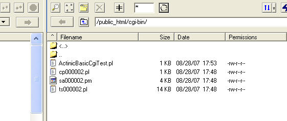 The scripts are not executing for Actinic however a test script with the extension .pl runs fine.